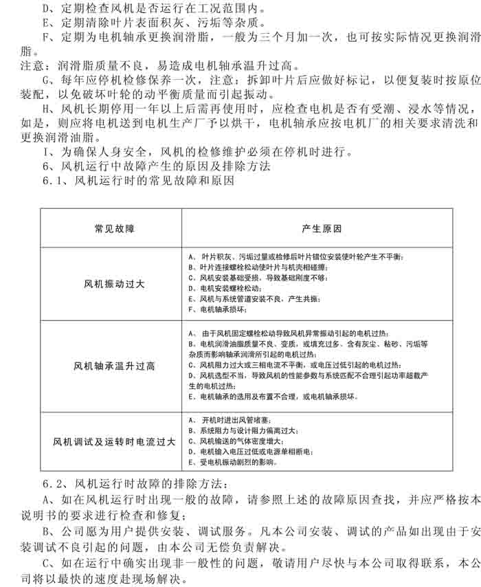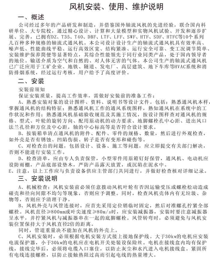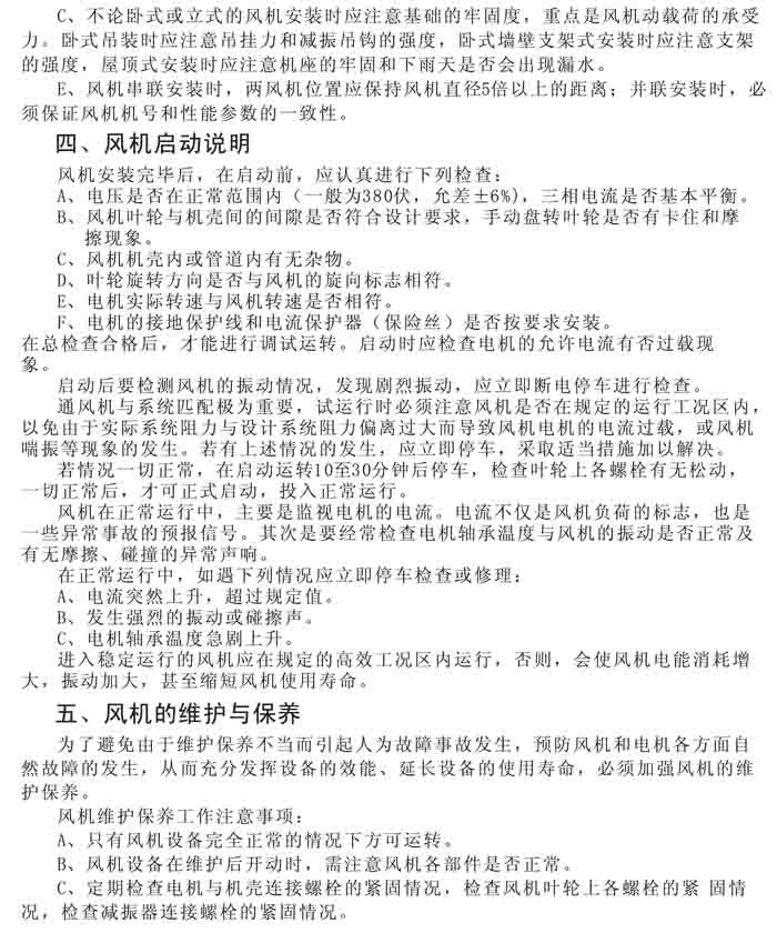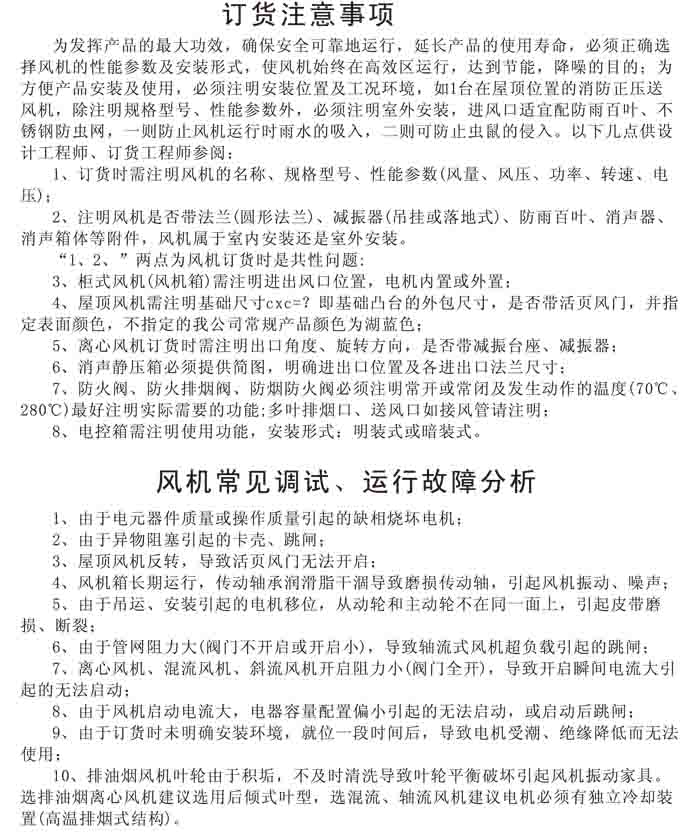 一、風(fēng)機(jī)選用參考、安裝維護(hù)使用說(shuō)明、常見(jiàn)故障分析、訂貨注意事項(xiàng)